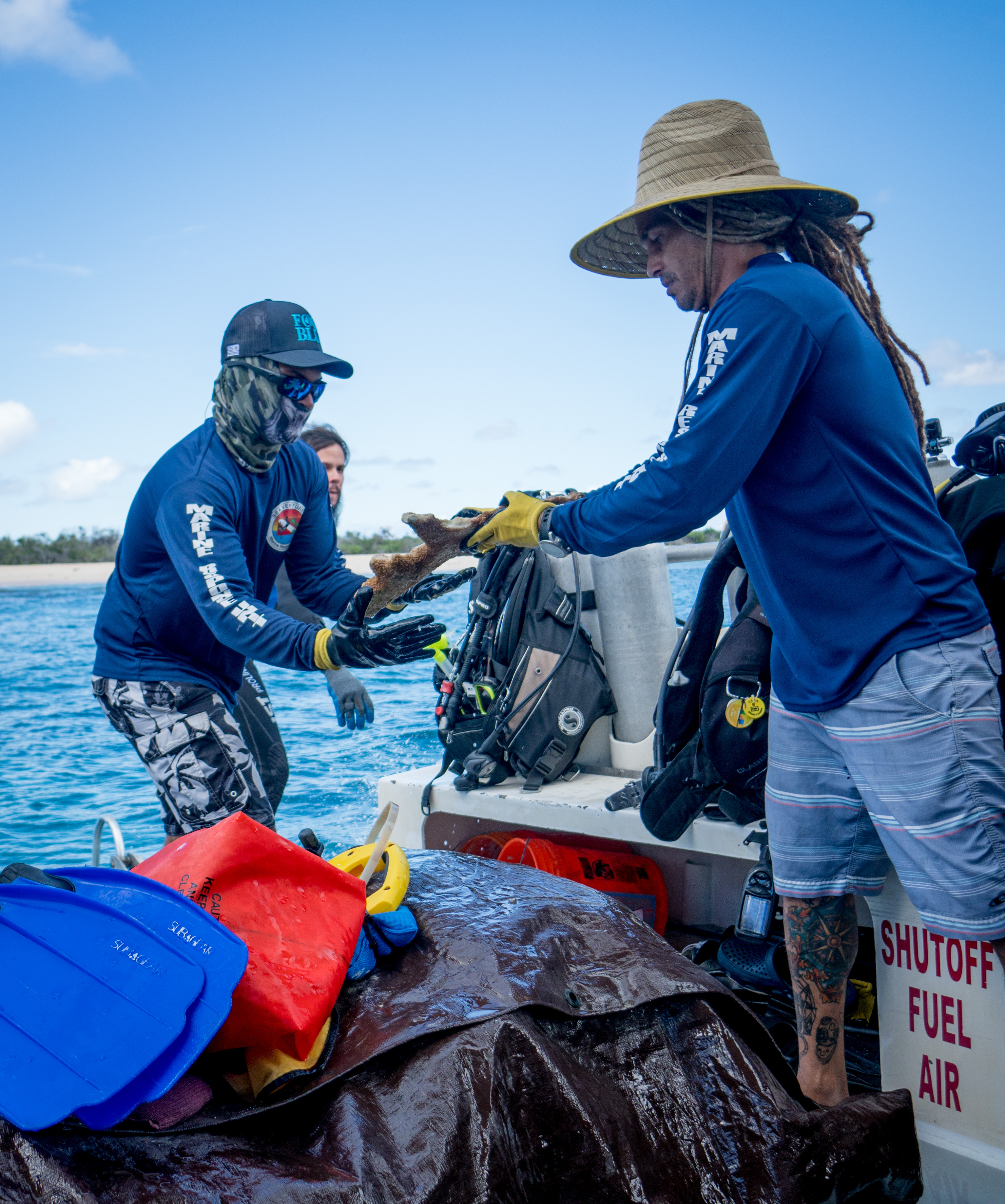 Nathan Quinn: After a rigorous selection process by our own Roger Sparks, Force Blue has an initial two-week training that includes courses from industry leaders like Lad Akins of REEF, Coral Restoration from Patti Gross Kirk of Coral Restoration Foundation, Underwater Photography from the world-famous Cathy Church. There is some classroom instruction but there is simply no substitute for getting in the water and getting the work done. This kind of instruction is very familiar to those with experience in Special Operations; the best in the field tell you how it’s done and in no time flat you are in a controlled environment getting it done under observation—honing that skill to a sharp point. Everyone is fully focused knowing that soon enough it will be put to practice in the field. There is also continuing education, thanks to Force Blue’s Training Director Angelo Fiore, and these programs are only getting better. We come from a diverse background ourselves and have much to teach one another. When there are gaps in that, we find the best in the field to show us how it’s done. We’re lucky enough that they have said yes at every turn.