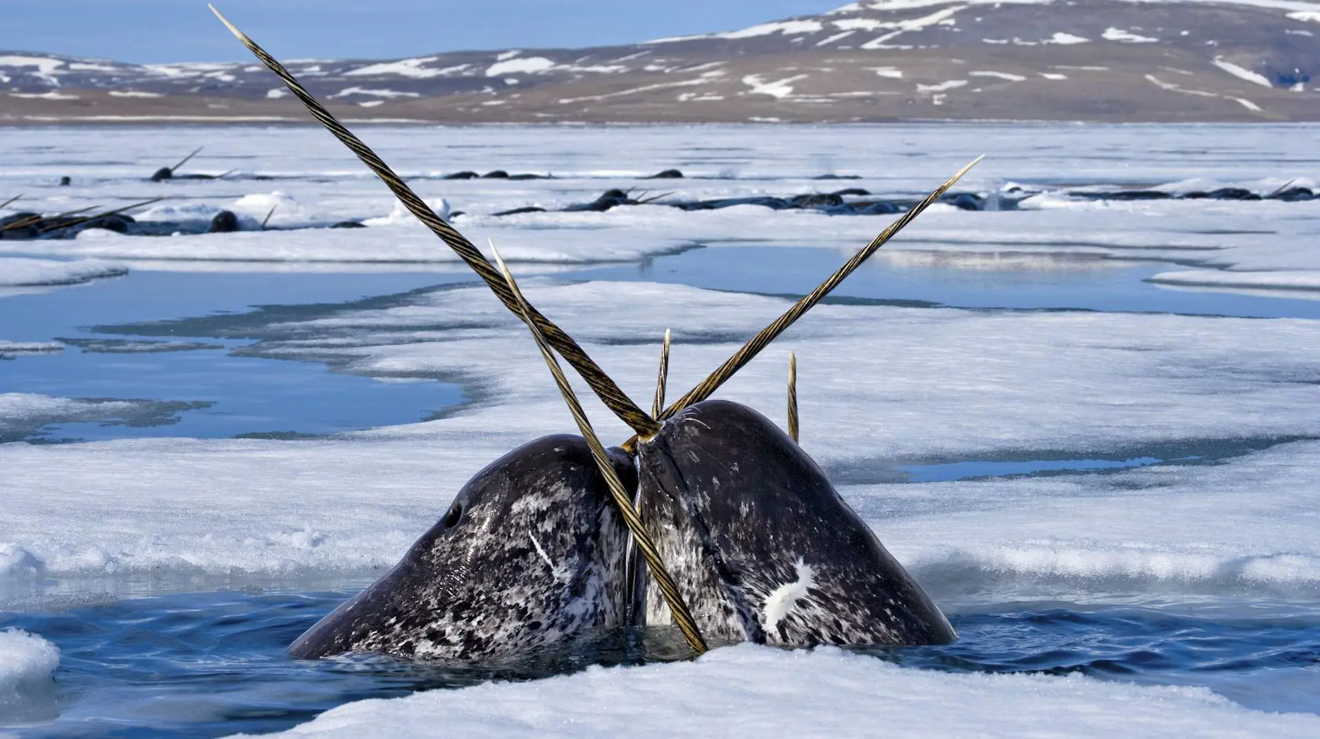 Narwhals like traveling with their friends and family in their pods. Narwhals communicate by using a series of clicks and squeals. They also sometimes see the males in their pod “tusking” or crossing tusks as a form of dueling or cleaning teeth.