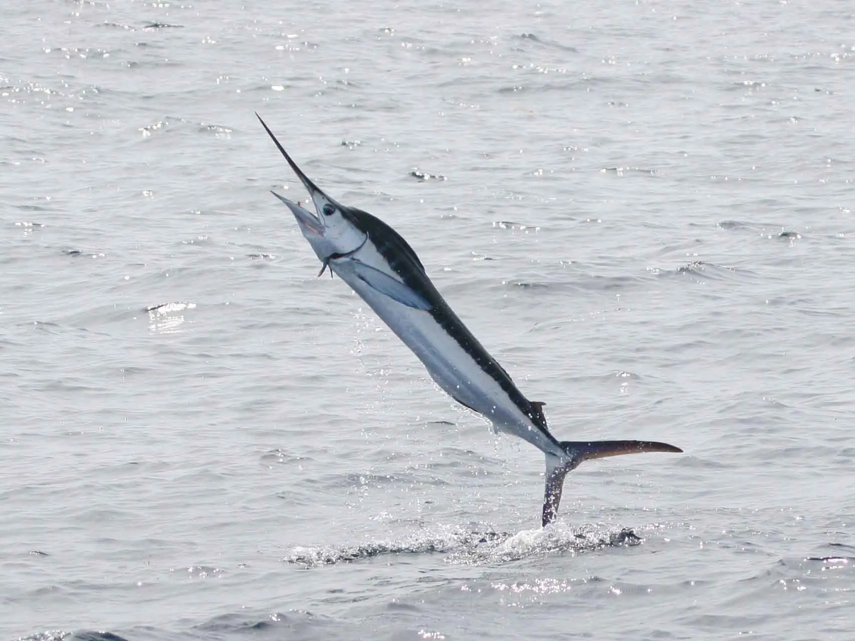 White marlins are among the flashier predators in the sea. Their distinctive upper jaws, known bills, are long and sharp, and white marlins use them to injure or kill their prey.